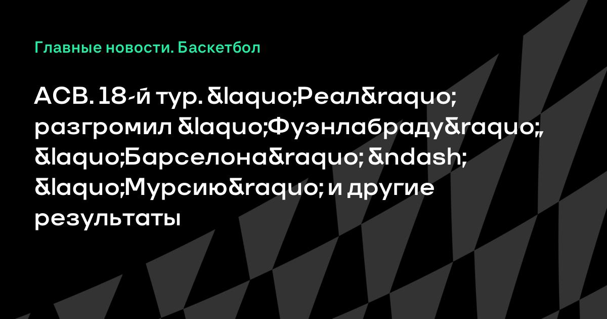 ACB. 18-й тур. «Реал» разгромил «Фуэнлабраду», «Барселона» – «Мурсию» и другие результаты