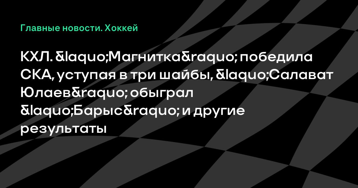 КХЛ. «Магнитка» победила СКА, уступая в три шайбы, «Салават Юлаев» обыграл «Барыс» и другие результаты