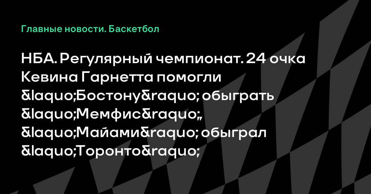 НБА. Регулярный чемпионат. 24 очка Кевина Гарнетта помогли «Бостону» обыграть «Мемфис», «Майами» обыграл «Торонто»