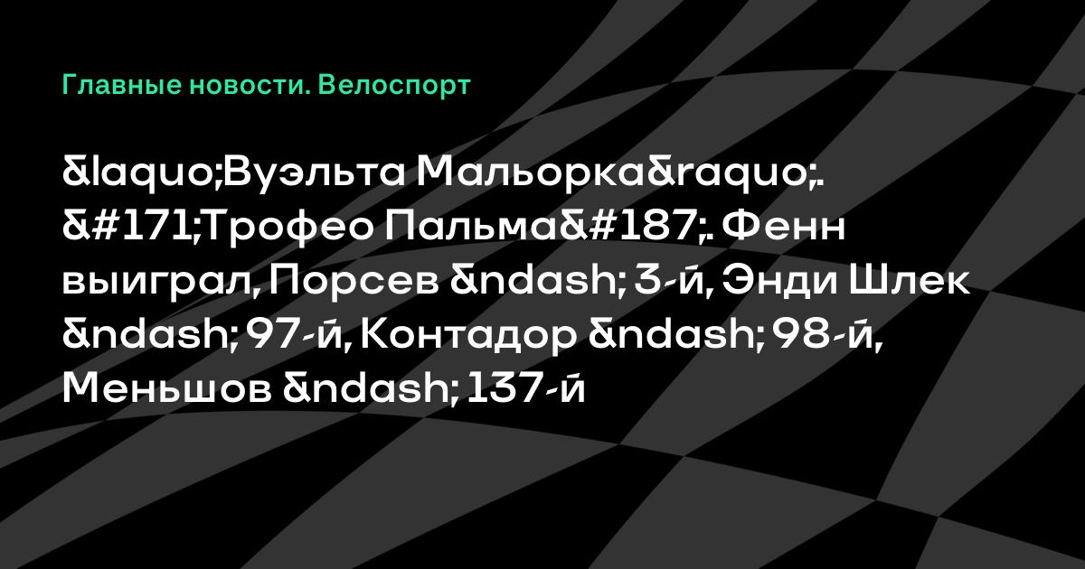 «Вуэльта Мальорка». «Трофео Пальма». Фенн выиграл, Порсев – 3-й, Энди Шлек – 97-й, Контадор – 98-й, Меньшов – 137-й