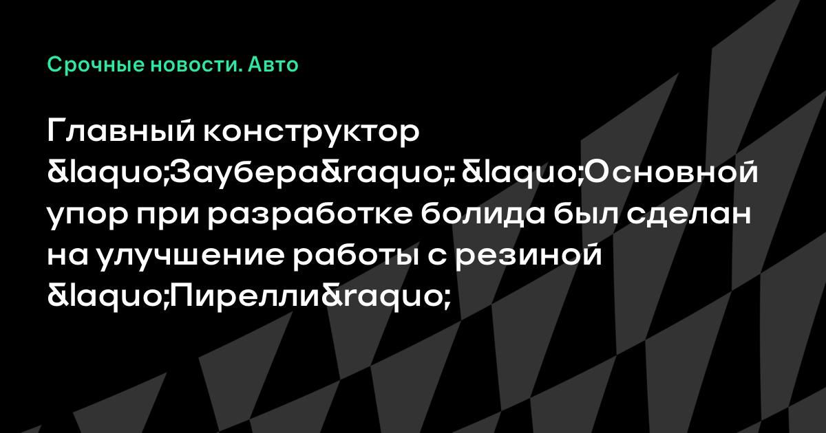 Главный конструктор «Заубера»: «Основной упор при разработке болида был сделан на улучшение работы с резиной «Пирелли»