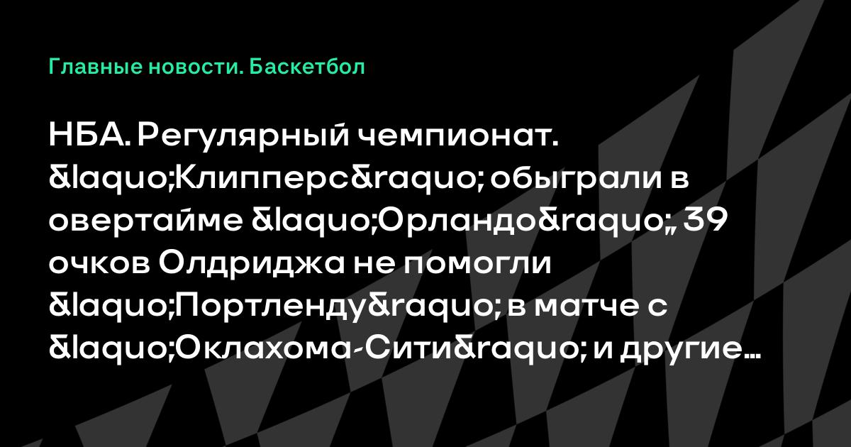 НБА. Регулярный чемпионат. «Клипперс» обыграли в овертайме «Орландо», 39 очков Олдриджа не помогли «Портленду» в матче с «Оклахома-Сити» и другие результаты