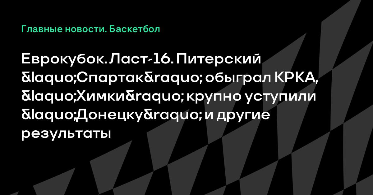 Еврокубок. Ласт-16. Питерский «Спартак» обыграл КРКА, «Химки» крупно уступили «Донецку» и другие результаты