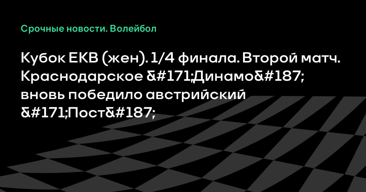 Кубок ЕКВ (жен). 1/4 финала. Второй матч. Краснодарское «Динамо» вновь победило австрийский «Пост»