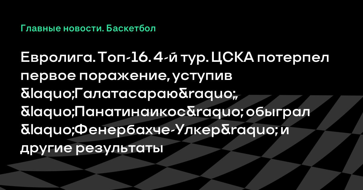 Евролига. Топ-16. 4-й тур. ЦСКА потерпел первое поражение, уступив «Галатасараю», «Панатинаикос» обыграл «Фенербахче-Улкер» и другие результаты
