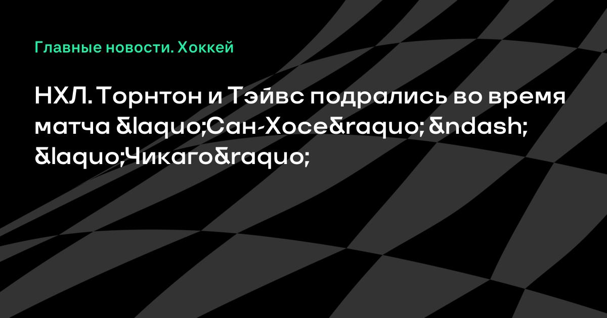 НХЛ. Торнтон и Тэйвс подрались во время матча «Сан-Хосе» – «Чикаго»