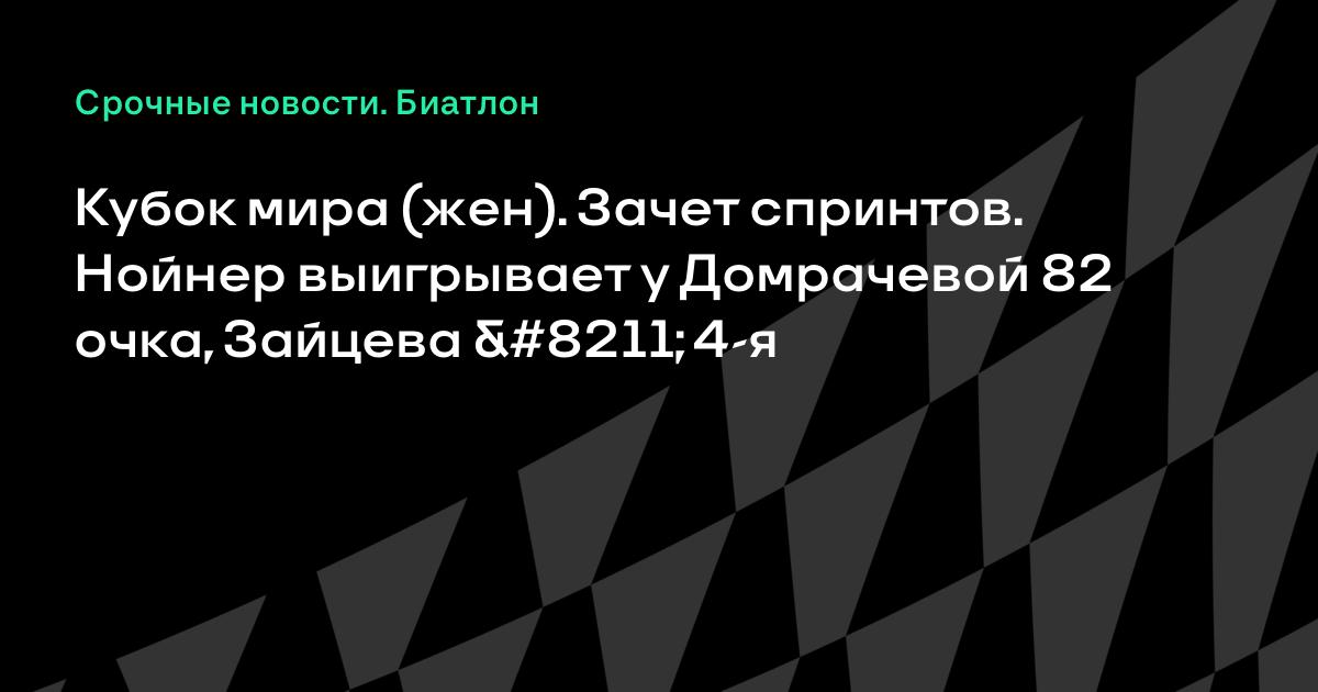 Кубок мира (жен). Зачет спринтов. Нойнер выигрывает у Домрачевой 82 очка, Зайцева – 4-я