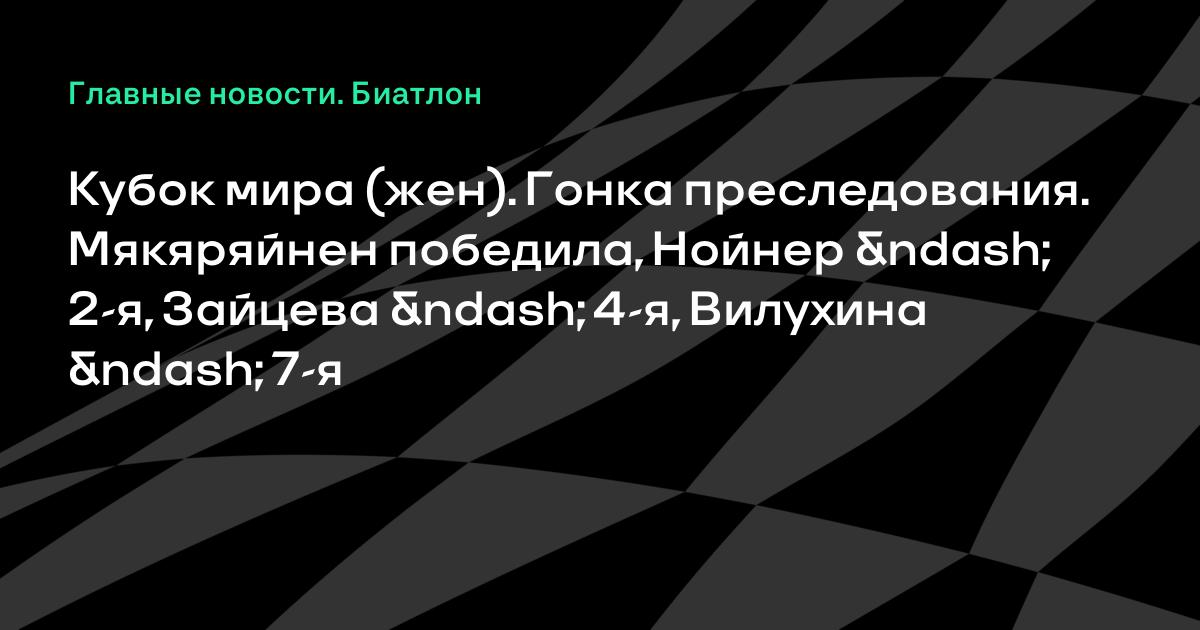 Кубок мира (жен). Гонка преследования. Мякяряйнен победила, Нойнер – 2-я, Зайцева – 4-я, Вилухина – 7-я