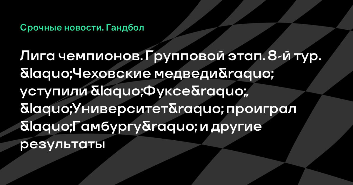 Лига чемпионов. Групповой этап. 8-й тур. «Чеховские медведи» уступили «Фуксе», «Университет» проиграл «Гамбургу» и другие результаты