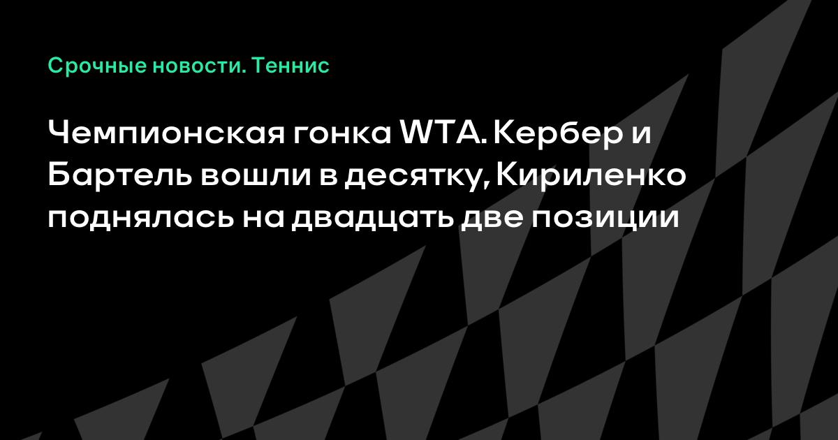 Чемпионская гонка WTA. Кербер и Бартель вошли в десятку, Кириленко поднялась на двадцать две позиции