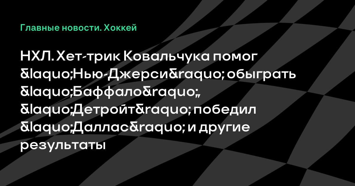 НХЛ. Хет-трик Ковальчука помог «Нью-Джерси» обыграть «Баффало», «Детройт» победил «Даллас» и другие результаты