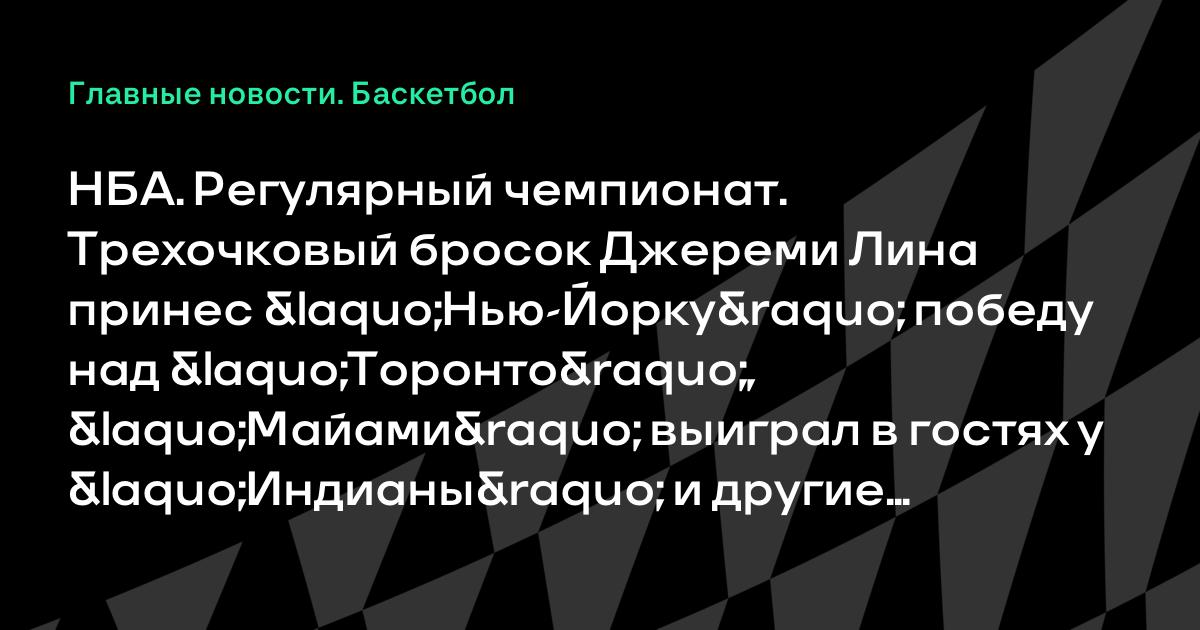 НБА. Регулярный чемпионат. Трехочковый бросок Джереми Лина принес «Нью-Йорку» победу над «Торонто», «Майами» выиграл в гостях у «Индианы» и другие результаты