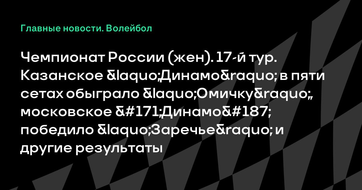 Чемпионат России (жен). 17-й тур. Казанское «Динамо» в пяти сетах обыграло «Омичку», московское «Динамо» победило «Заречье» и другие результаты