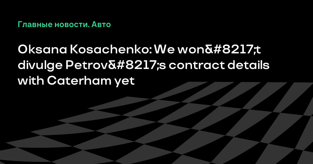 Oksana Kosachenko: We won’t divulge Petrov’s contract details with Caterham yet