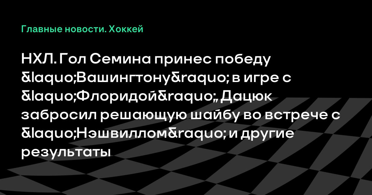 НХЛ. Гол Семина принес победу «Вашингтону» в игре с «Флоридой», Дацюк забросил решающую шайбу во встрече с «Нэшвиллом» и другие результаты