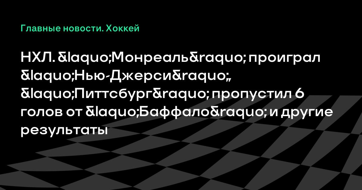 НХЛ. «Монреаль» проиграл «Нью-Джерси», «Питтсбург» пропустил 6 голов от «Баффало» и другие результаты