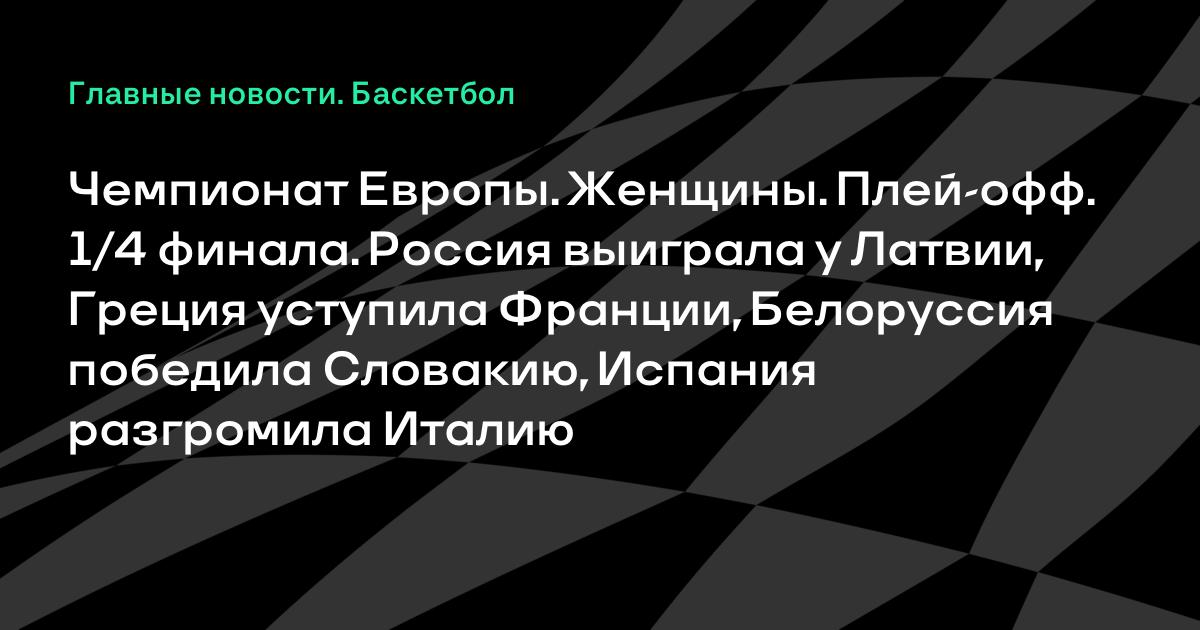 Чемпионат Европы. Женщины. Плей-офф. 1/4 финала. Россия выиграла у Латвии, Греция уступила Франции, Белоруссия победила Словакию, Испания разгромила Италию