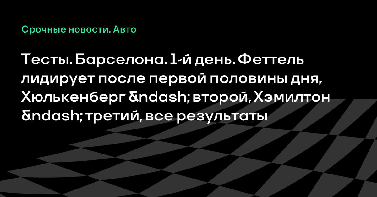 Тесты. Барселона. 1-й день. Феттель лидирует после первой половины дня, Хюлькенберг – второй, Хэмилтон – третий, все результаты