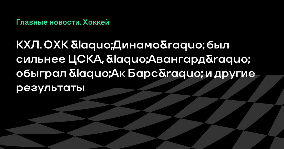 КХЛ. ОХК «Динамо» был сильнее ЦСКА, «Авангард» обыграл «Ак Барс» и другие результаты