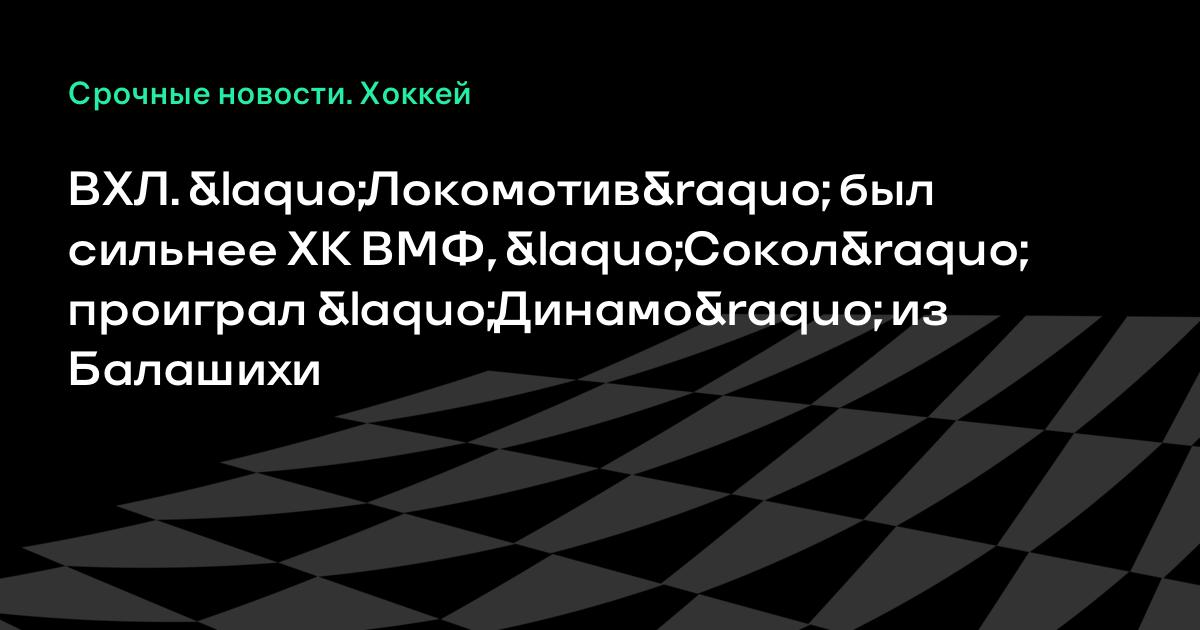ВХЛ. «Локомотив» был сильнее ХК ВМФ, «Сокол» проиграл «Динамо» из Балашихи