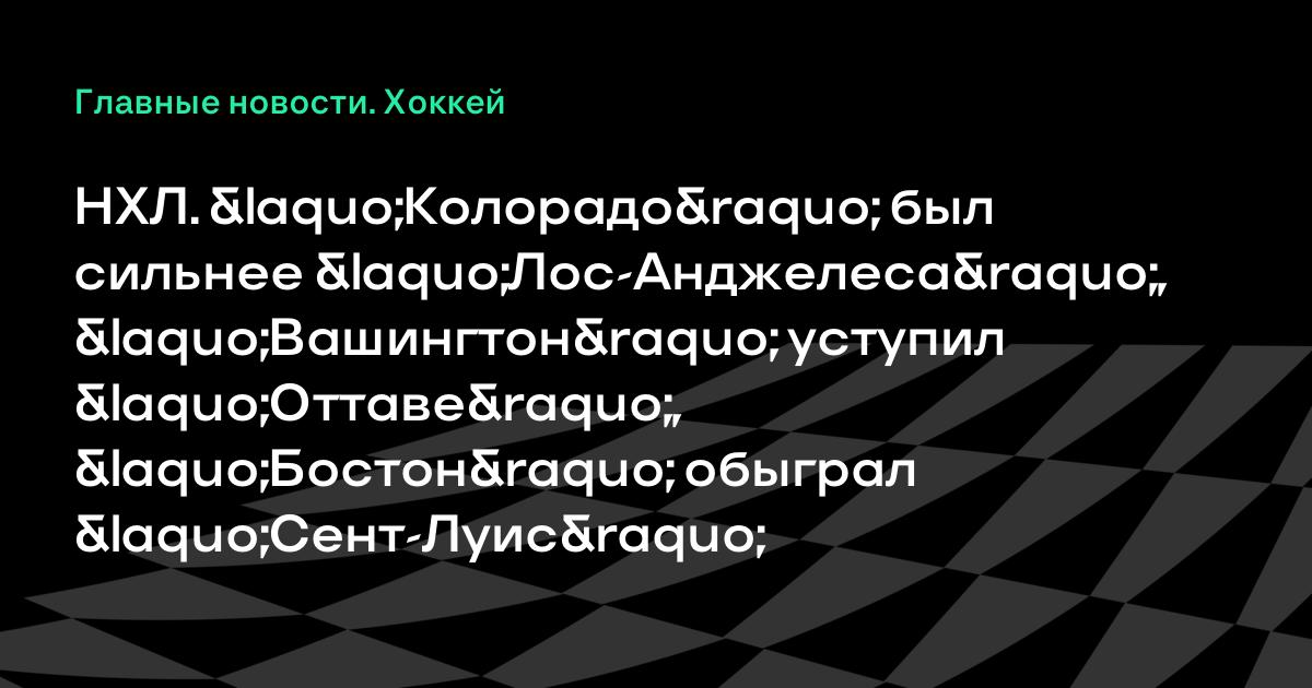 НХЛ. «Колорадо» был сильнее «Лос-Анджелеса», «Вашингтон» уступил «Оттаве», «Бостон» обыграл «Сент-Луис»