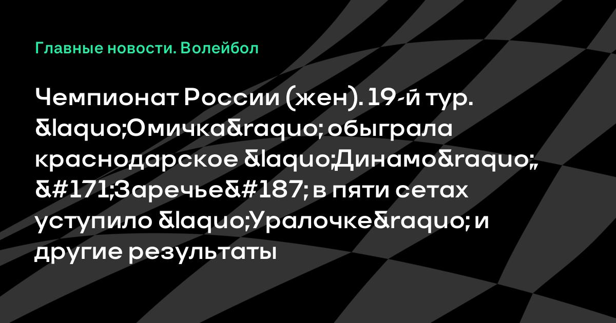 Чемпионат России (жен). 19-й тур. «Омичка» обыграла краснодарское «Динамо», «Заречье» в пяти сетах уступило «Уралочке» и другие результаты