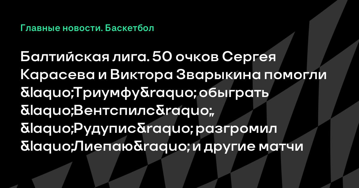 Балтийская лига. 50 очков Сергея Карасева и Виктора Зварыкина помогли «Триумфу» обыграть «Вентспилс», «Рудупис» разгромил «Лиепаю» и другие матчи