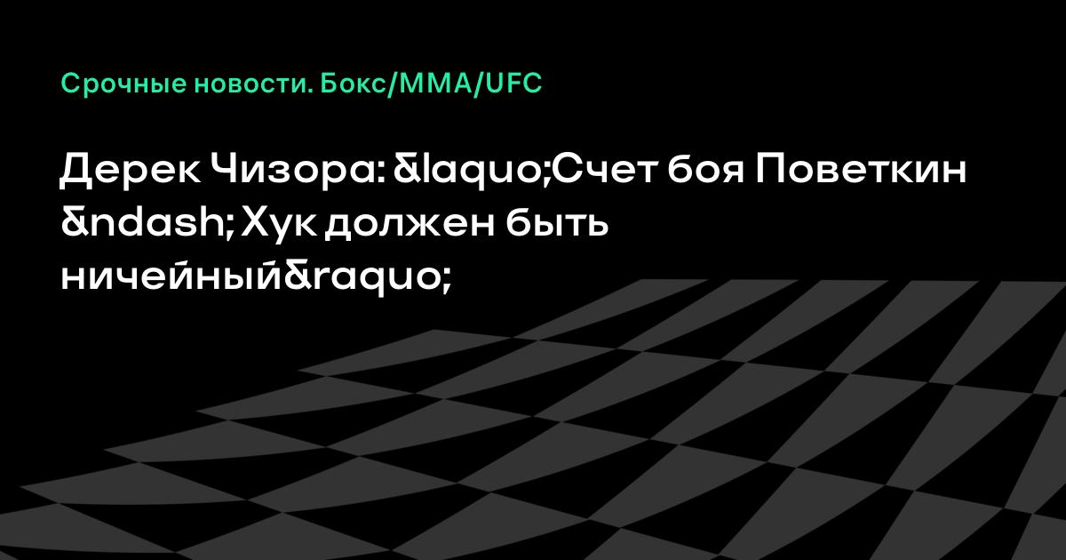 – Для меня счет этого боя должен быть ничейный, — цитирует Чизору Sportbox.ru.