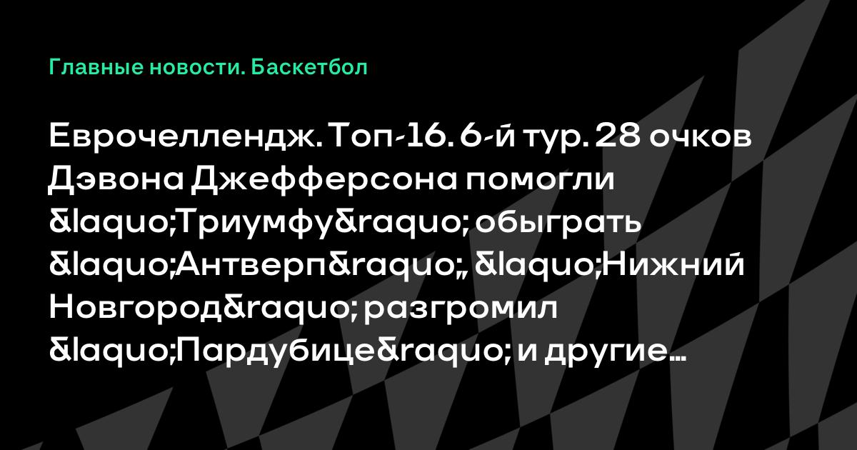 Еврочеллендж. Топ-16. 6-й тур. 28 очков Дэвона Джефферсона помогли «Триумфу» обыграть «Антверп», «Нижний Новгород» разгромил «Пардубице» и другие результаты