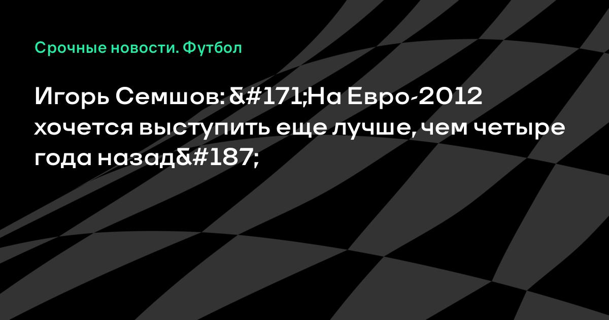 Игорь Семшов: «На Евро-2012 хочется выступить еще лучше, чем четыре года назад»