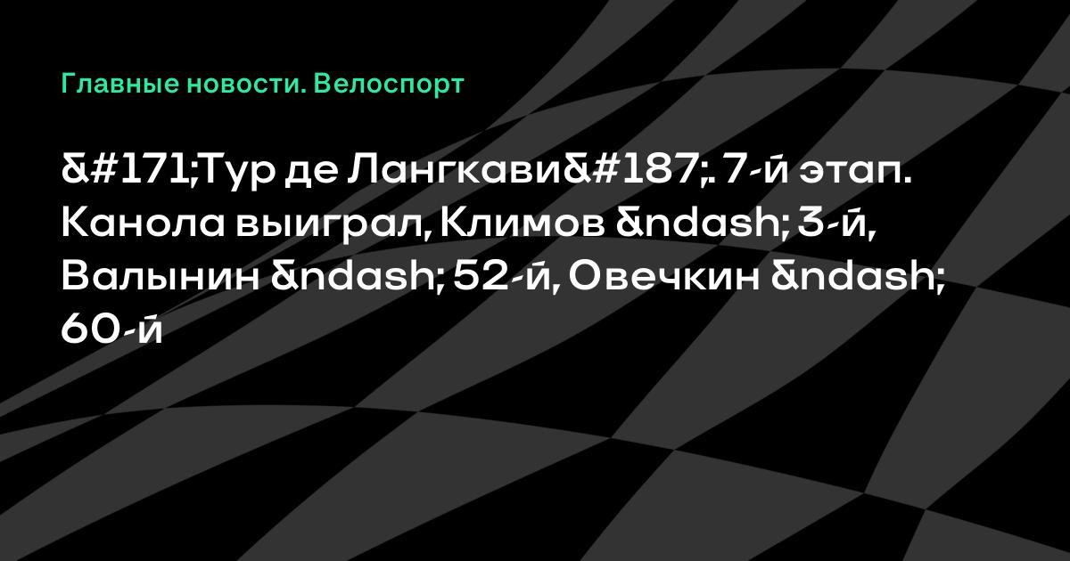 «Тур де Лангкави». 7-й этап. Канола выиграл, Климов – 3-й, Валынин – 52-й, Овечкин – 60-й