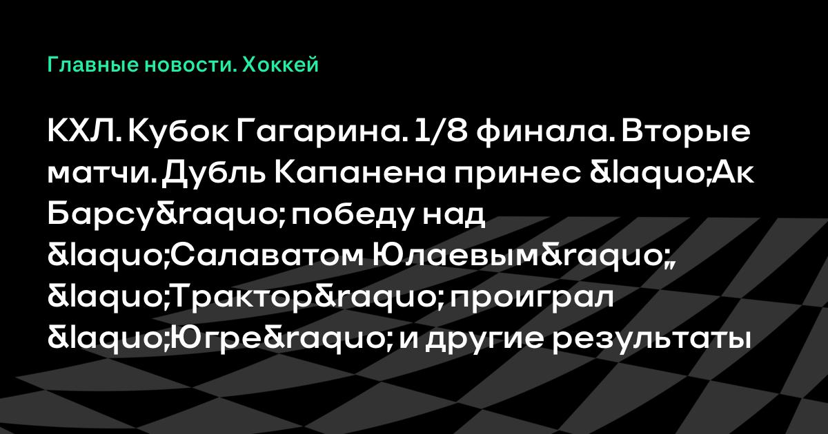 КХЛ. Кубок Гагарина. 1/8 финала. Вторые матчи. Дубль Капанена принес «Ак Барсу» победу над «Салаватом Юлаевым», «Трактор» проиграл «Югре» и другие результаты