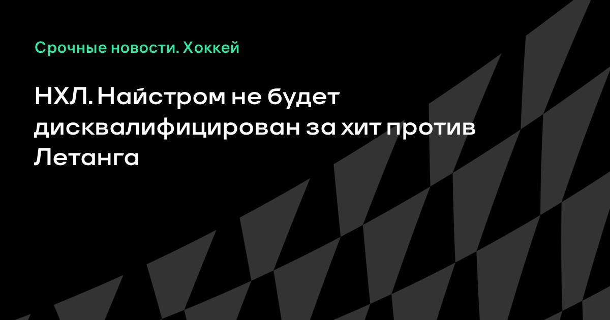 Нападающий «Даллас» Эрик Найстром не будет дисквалифицирован за хит против защитника «Питтсбурга» Криса Летанга, в результате чего Летанг получил травму, сообщает The Dallas Morning News.