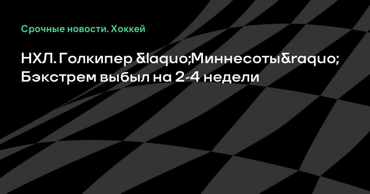 Голкипер «Миннесоты» Никлас Бэкстрем, получивший травму в матче с «Монреалем» (4:5 Б), пропустит от 2 до 4 недель, сообщает официальный сайт НХЛ.