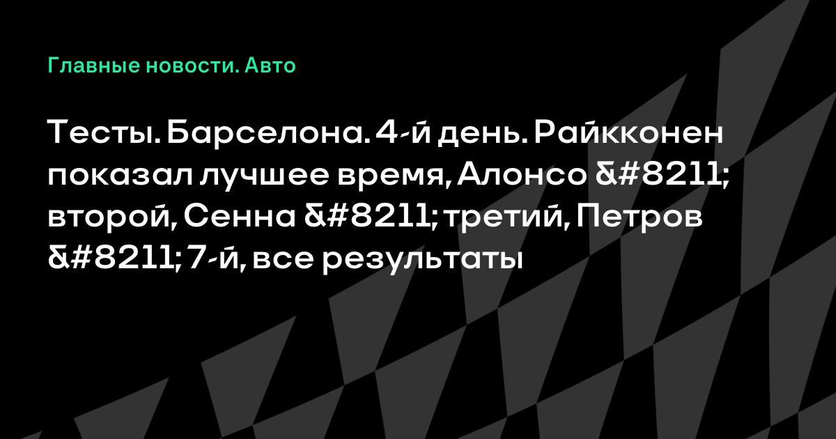 Тесты. Барселона. 4-й день. Райкконен показал лучшее время, Алонсо – второй, Сенна – третий, Петров – 7-й, все результаты