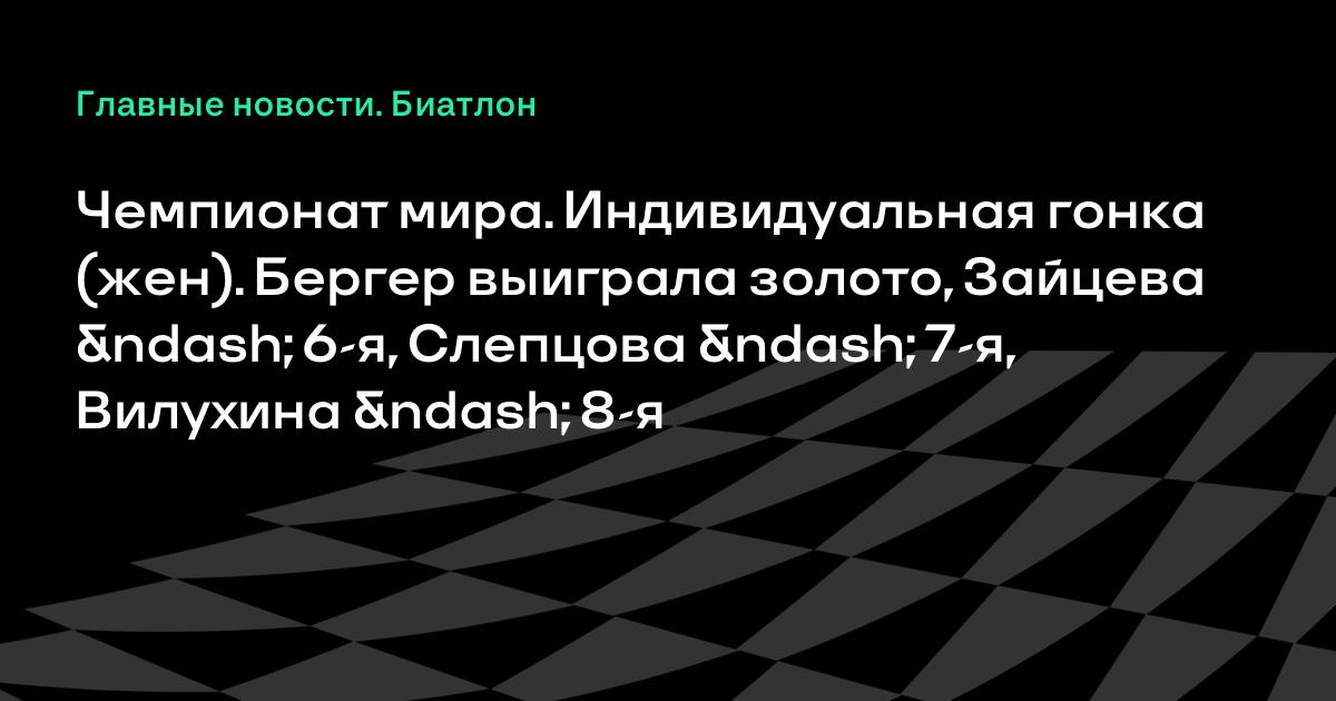 Чемпионат мира. Индивидуальная гонка (жен). Бергер выиграла золото, Зайцева – 6-я, Слепцова – 7-я, Вилухина – 8-я
