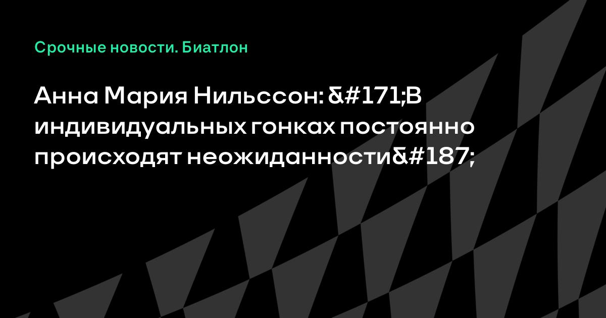 «Если посмотреть на результаты прошлых индивидуальных гонок, то всегда на подиуме был кто-то, от кого не ждали столь высокого результата. Так что думаю, что у меня есть шанс», – приводит слова Нильссон SVT.