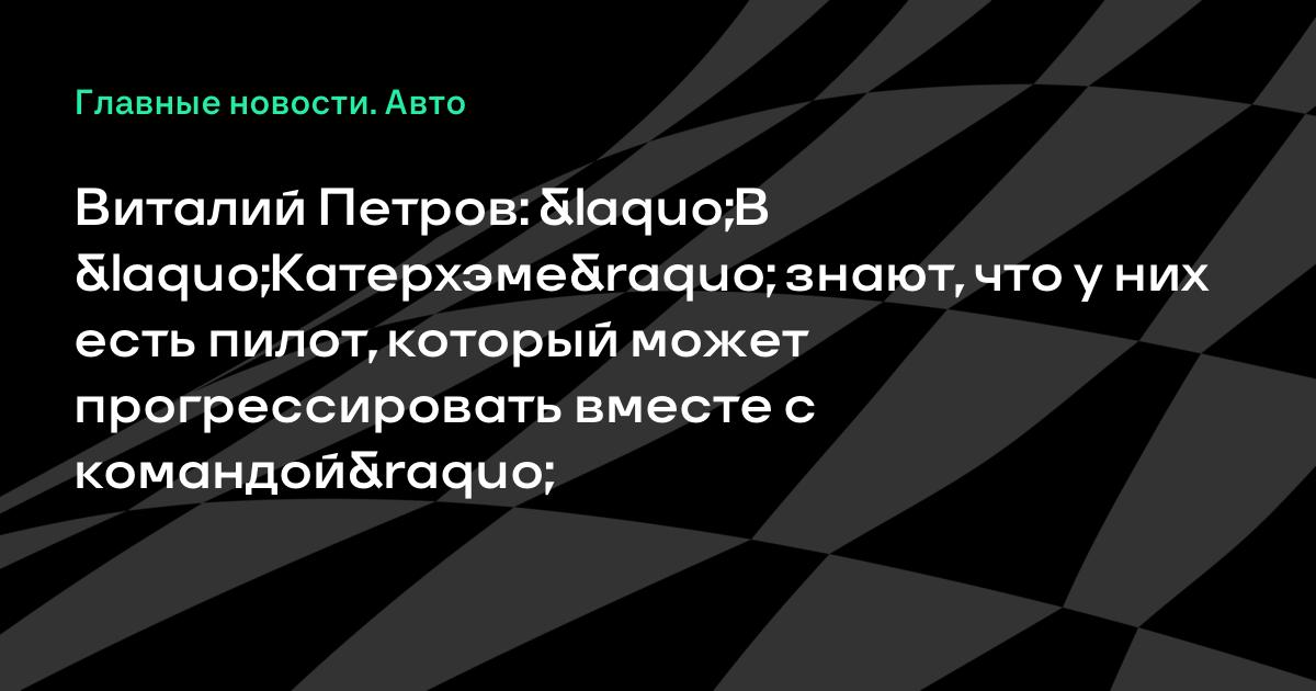 Виталий Петров: «В «Катерхэме» знают, что у них есть пилот, который может прогрессировать вместе с командой»