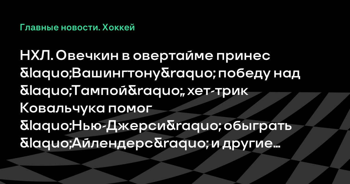 НХЛ. Овечкин в овертайме принес «Вашингтону» победу над «Тампой», хет-трик Ковальчука помог «Нью-Джерси» обыграть «Айлендерс» и другие результаты