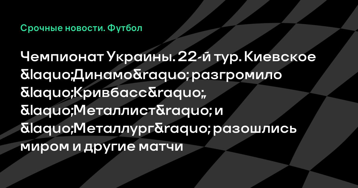Чемпионат Украины. 22-й тур. Киевское «Динамо» разгромило «Кривбасс», «Металлист» и «Металлург» разошлись миром и другие матчи