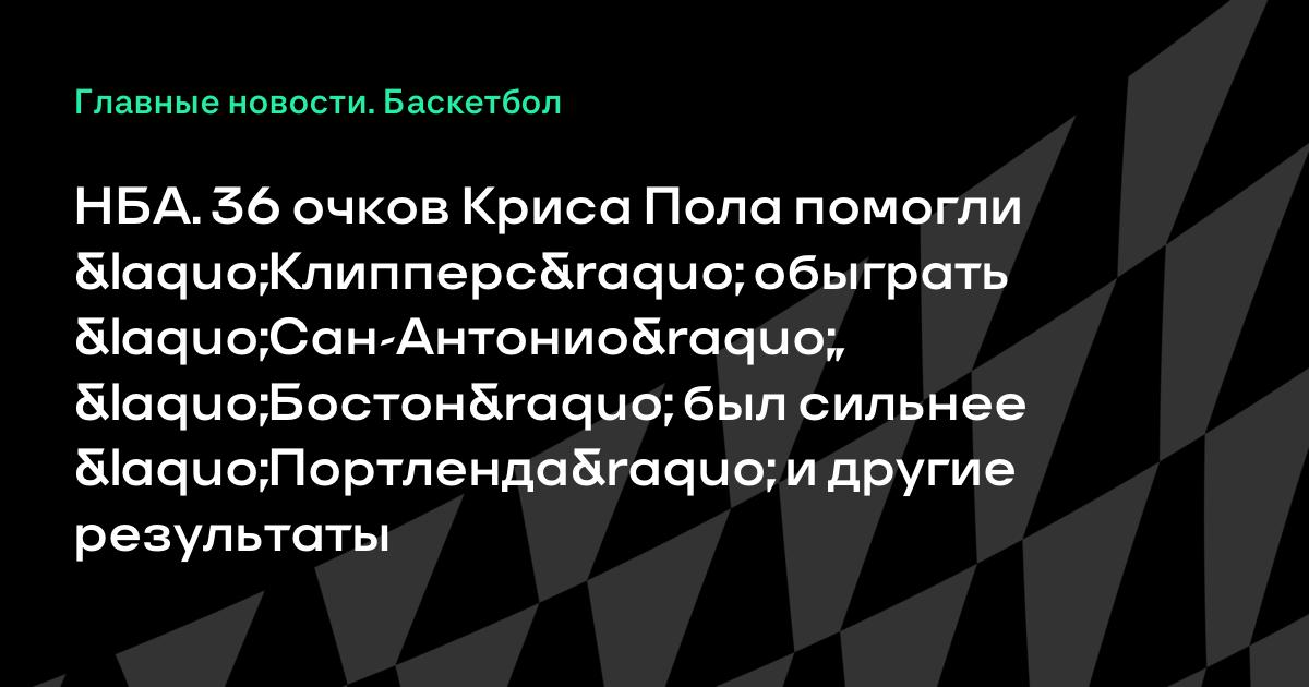 НБА. 36 очков Криса Пола помогли «Клипперс» обыграть «Сан-Антонио», «Бостон» был сильнее «Портленда» и другие результаты