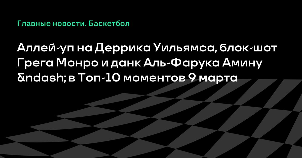 10 марта 2012, 12:28 Аллей-уп на Деррика Уильямса, блок-шот Грега Монро и данк Аль-Фарука Амину – в Топ-10 моментов 9 марта Баскетбол НБА Баскетбол - видео