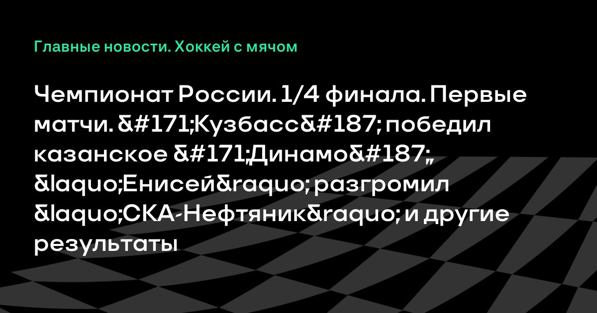 Чемпионат России. 1/4 финала. Первые матчи. «Кузбасс» победил казанское «Динамо», «Енисей» разгромил «СКА-Нефтяник» и другие результаты