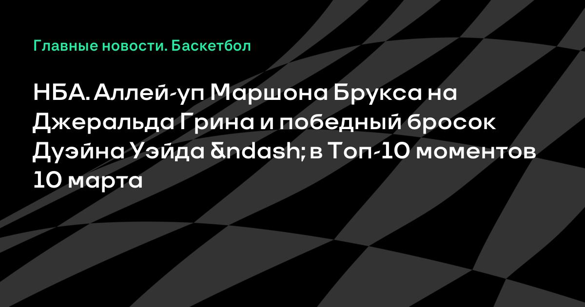 НБА. Аллей-уп Маршона Брукса на Джеральда Грина и победный бросок Дуэйна Уэйда – в Топ-10 моментов 10 марта