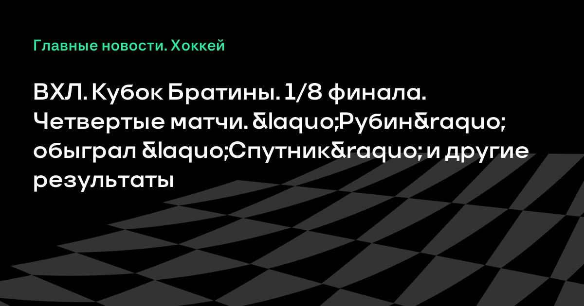 ВХЛ. Кубок Братины. 1/8 финала. Четвертые матчи. «Рубин» обыграл «Спутник» и другие результаты