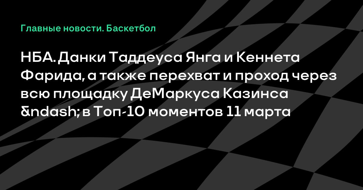 НБА. Данки Таддеуса Янга и Кеннета Фарида, а также перехват и проход через всю площадку ДеМаркуса Казинса – в Топ-10 моментов 11 марта