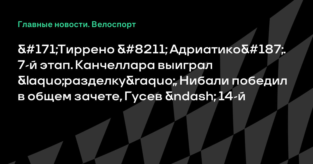 «Тиррено – Адриатико». 7-й этап. Канчеллара выиграл «разделку», Нибали победил в общем зачете, Гусев – 14-й