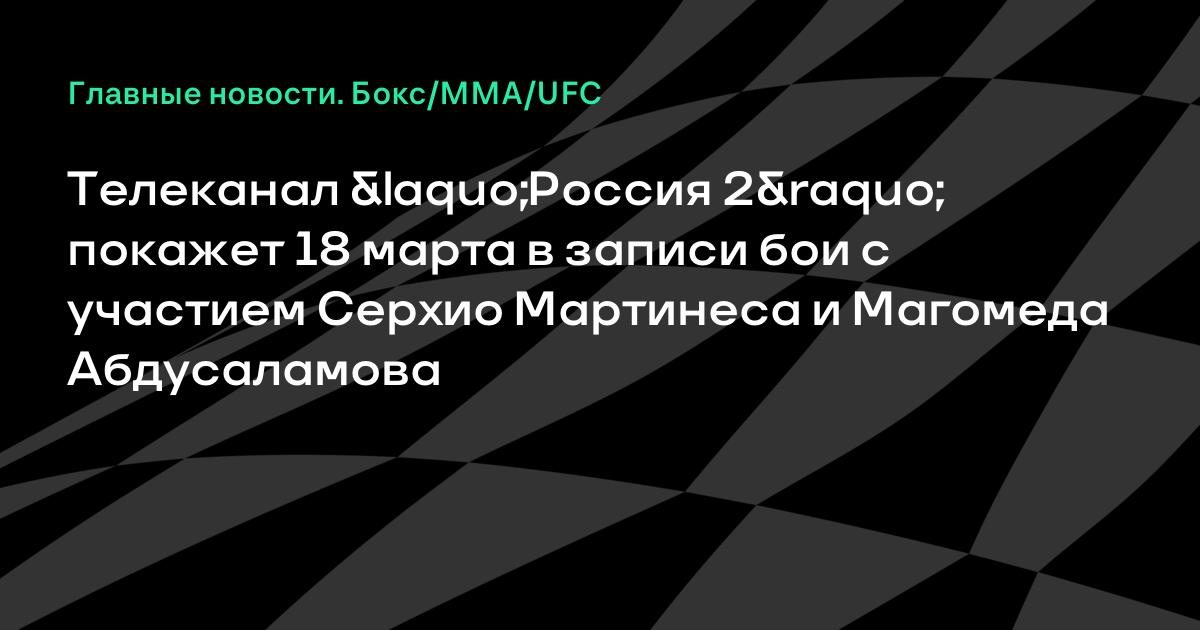 Телеканал «Россия 2» покажет 18 марта в записи бои с участием Серхио Мартинеса и Магомеда Абдусаламова