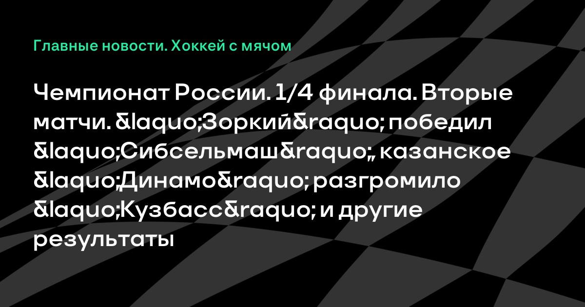 Чемпионат России. 1/4 финала. Вторые матчи. «Зоркий» победил «Сибсельмаш», казанское «Динамо» разгромило «Кузбасс» и другие результаты
