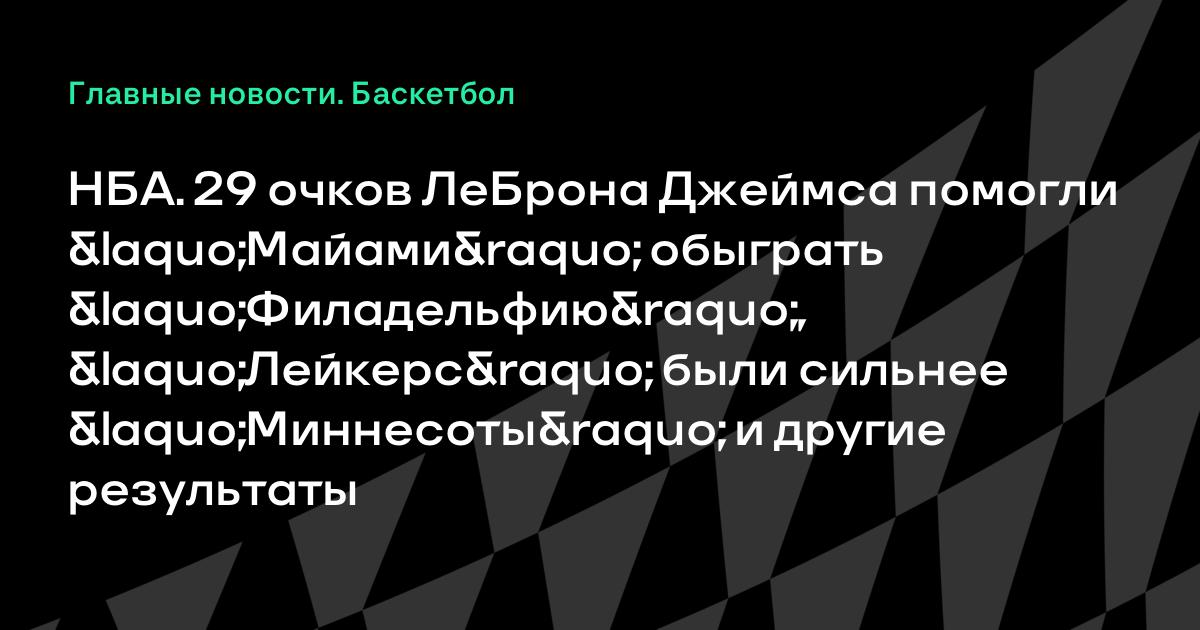 НБА. 29 очков ЛеБрона Джеймса помогли «Майами» обыграть «Филадельфию», «Лейкерс» были сильнее «Миннесоты» и другие результаты